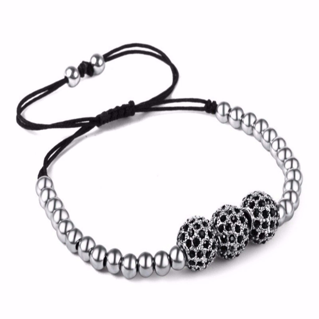 Unisex 8mm Black Beaded Dumbbell Bracelet
