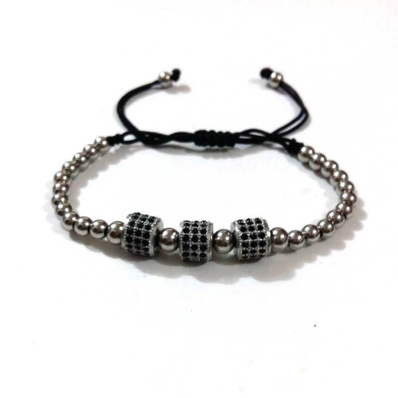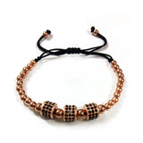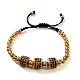 3 Zircon 18k Gold Roundels Ball with 4mm Beaded Macrame Bracelet