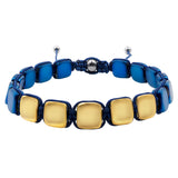 Hematite 8mm Magnetic Beaded Bracelet with Adjustable Rope - Square - Gold/Blue