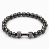 Unisex 8mm Black Beaded Dumbbell Bracelet