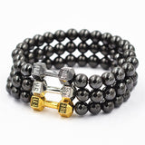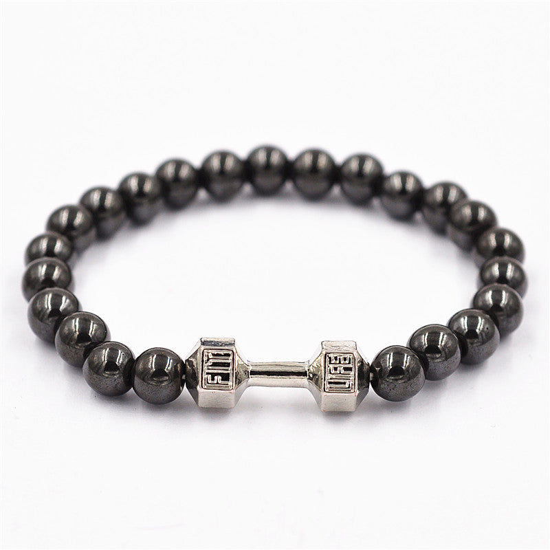 Unisex 8mm Hematite Beaded Dumbbell Bracelet