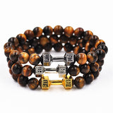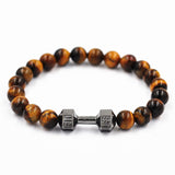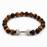 Unisex 8mm Tiger Eye Beaded Dumbbell Bracelet