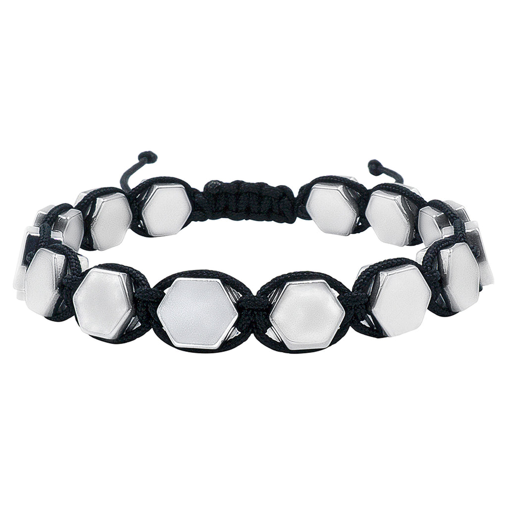 Hematite 8mm Magnetic Beaded Bracelet with Adjustable Rope - Hexagon - Stainless Steel