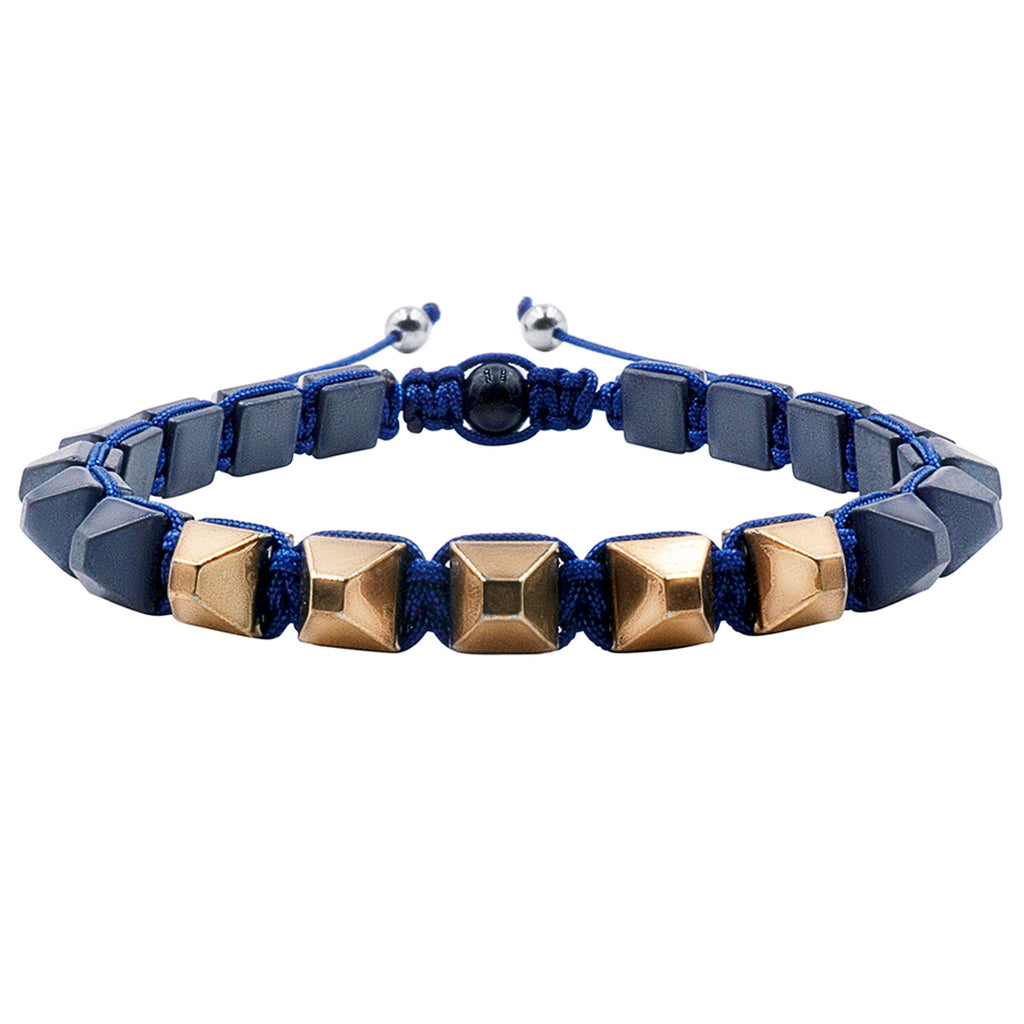Hematite 8mm Magnetic Beaded Bracelet with Adjustable Rope - Pyramid - Gold/Grey