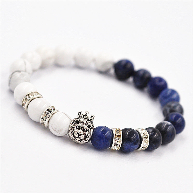 Unisex 8mm Black Beaded Dumbbell Bracelet