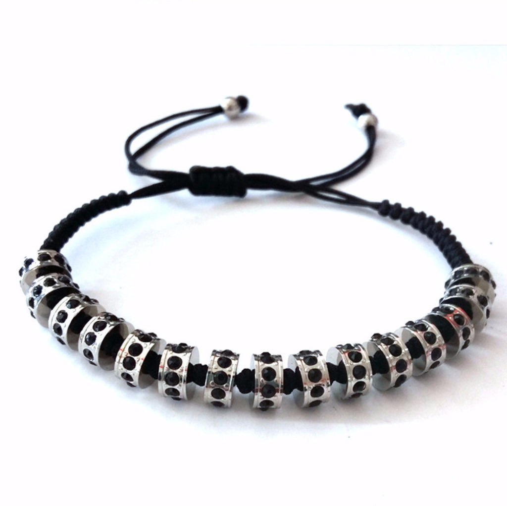 Unisex 8mm Black Beaded Dumbbell Bracelet
