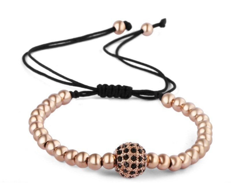 18k Disco Zicron Ball with 4mm Beaded Macrame Bracelet